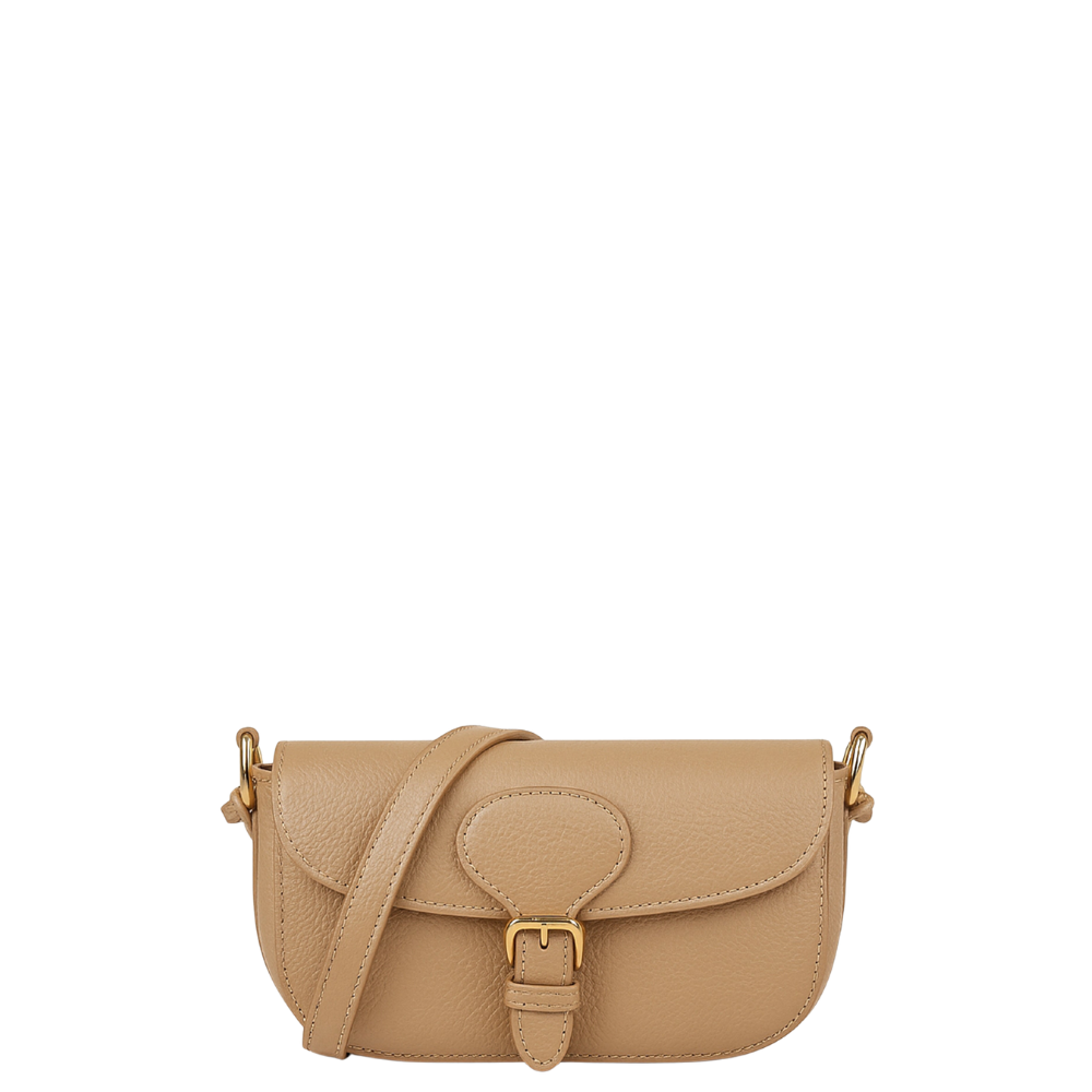 Elvixa Tan Buckle Detail Compact Shoulder Bag